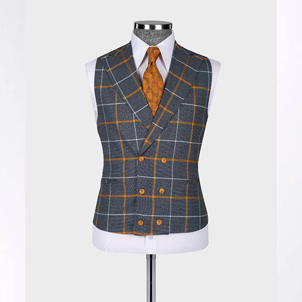 100% Gray & Orange Wool Windowpane, 3 Piece Suit