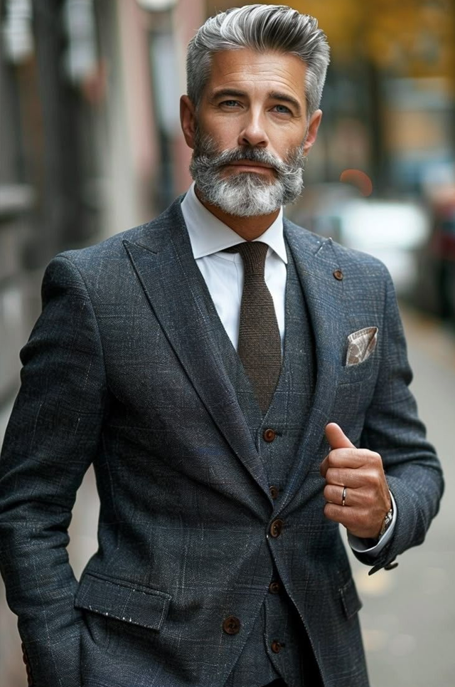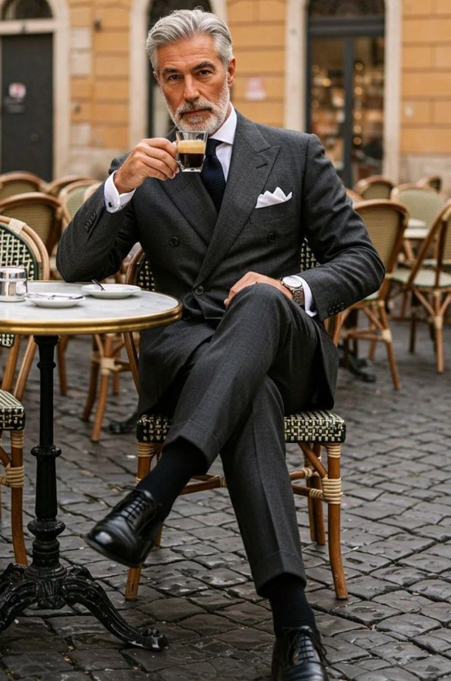 100% Silk Wool Dark Gray Double Breasted classic suit