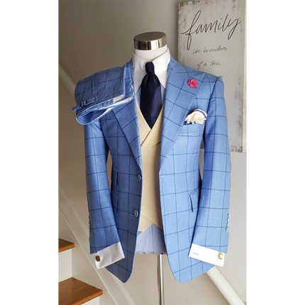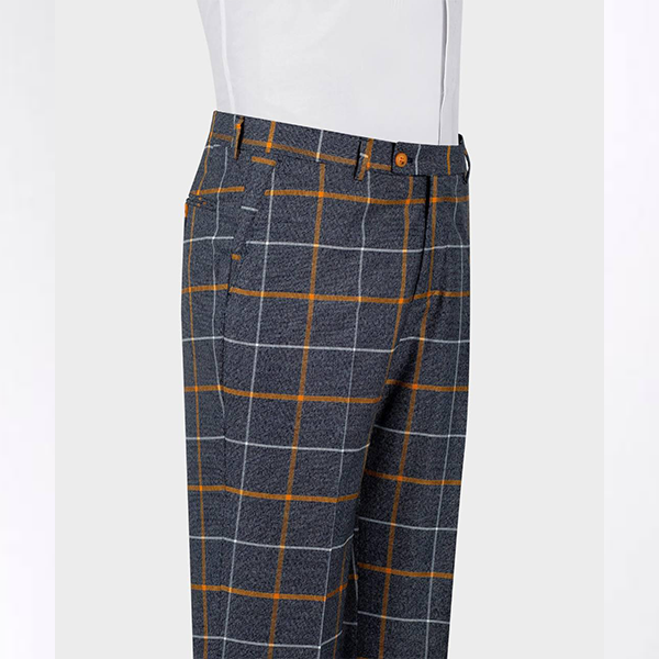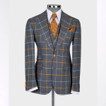 100% Gray & Orange Wool Windowpane, 3 Piece Suit