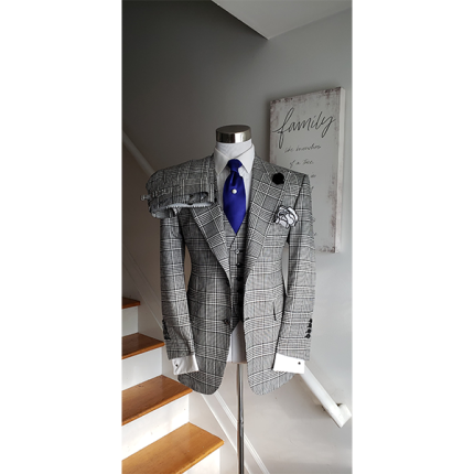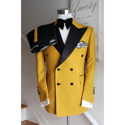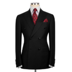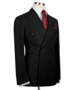 100% Silk Wool Black Double Breasted classic suit