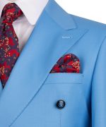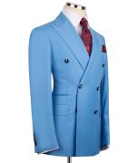 100% Silk Wool Sky Blue Classic Double Breated suit