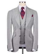 100% Wool Gray Suit 3 Piece Suit with Slant Pocket