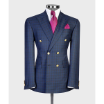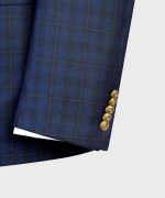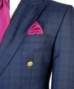 Navy Blue Plaid Wool Double Breasted Suit with Gold Buttons